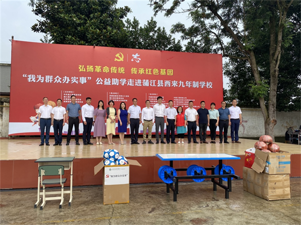 6月1日,在一年一度的“六一”兒童節(jié)之際,由中共蒲江縣委宣傳部、蒲江縣教育局、共青團(tuán)蒲江縣委、成都高新區(qū)志愿者協(xié)會主辦,成都高新區(qū)芳草義工總隊(duì)、蒲江縣志愿者協(xié)會、蒲江縣西來九年制學(xué)校承辦的暖意濃濃的愛心活動“我為群眾辦實(shí)事,公益助學(xué)進(jìn)校園”志愿服務(wù)活動在蒲江縣西來鎮(zhèn)九年制學(xué)校舉行。